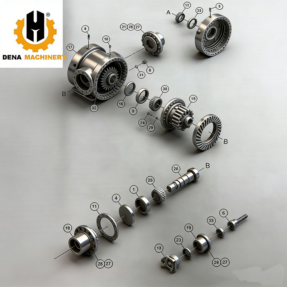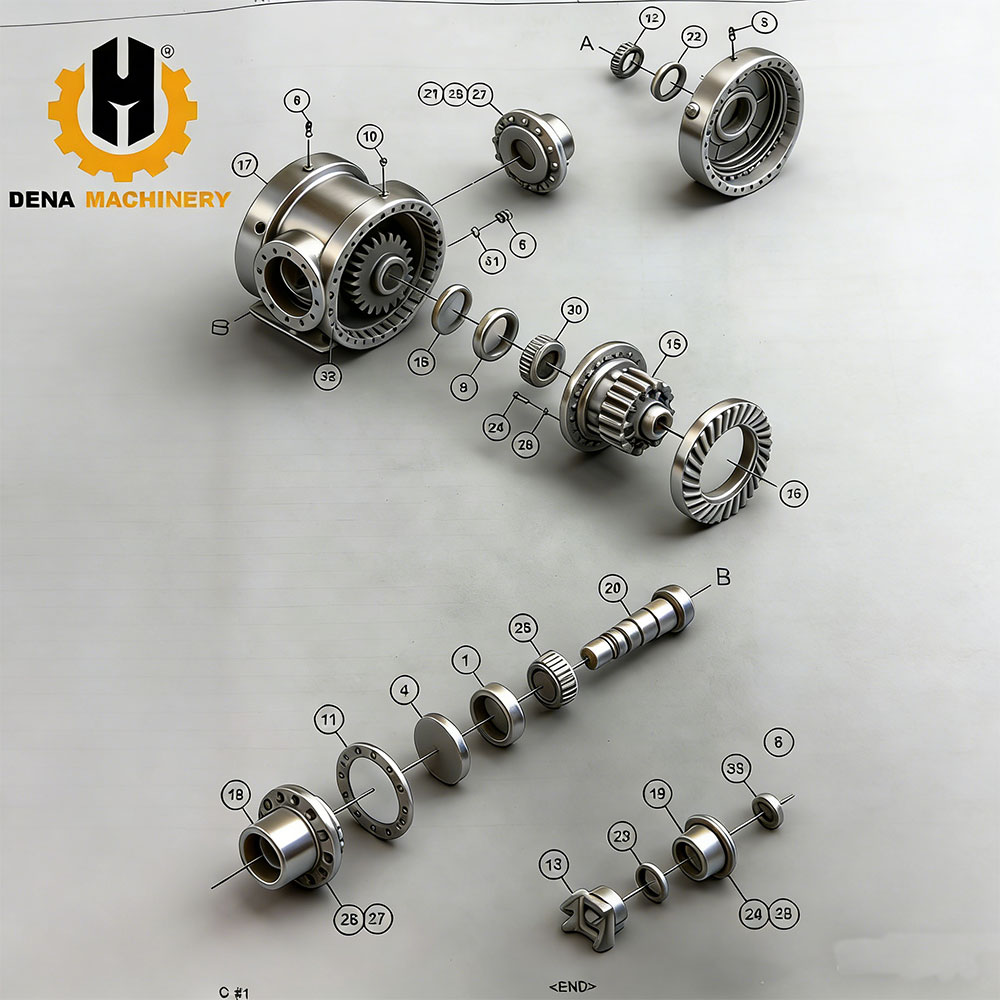 The company mainly produces various types of excavator travel reduction assy (final drive), swing reduction assy (swing device), gears, gear ring, swing shaft (shaft pinion), crankshafts, pin, carriers, carrier assembly, pump shaft, motor cases, bearings, housing, RV gear assy etc.